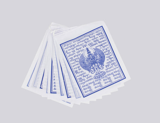 Vierarmige Chenrezig Gebetsfahnen, 20x20cm, Weiß