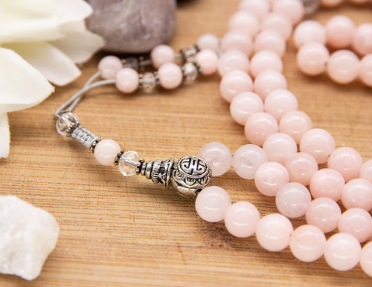 Rose Quartz & Faceted Glass Mala – 8mm