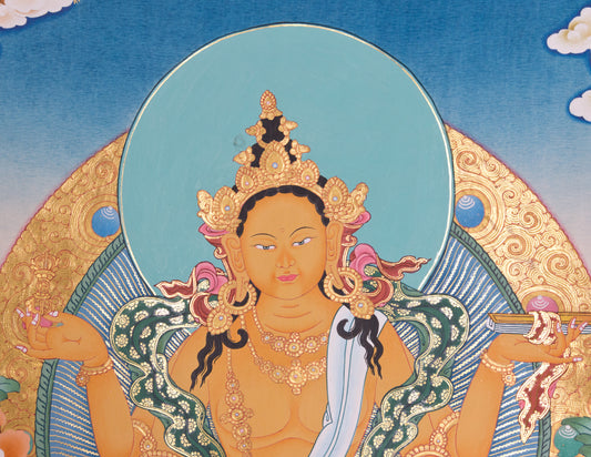 The thangka is a traditional representation of Buddhist deities, their attributes, and the surrounding mandala. Displayed above your shrine or in your place of practice, it serves as an inspiration and support for your meditation, visualization and sadhana practice.