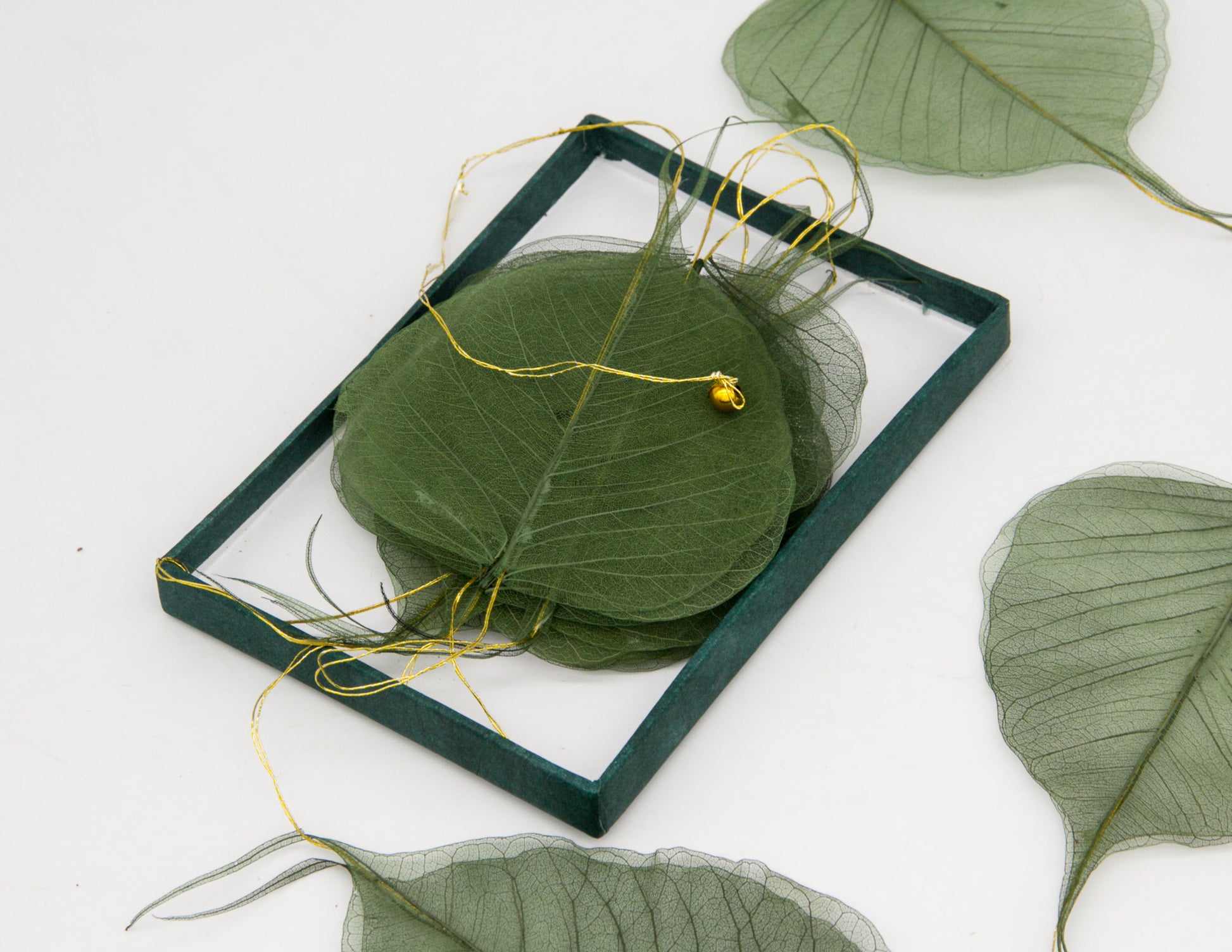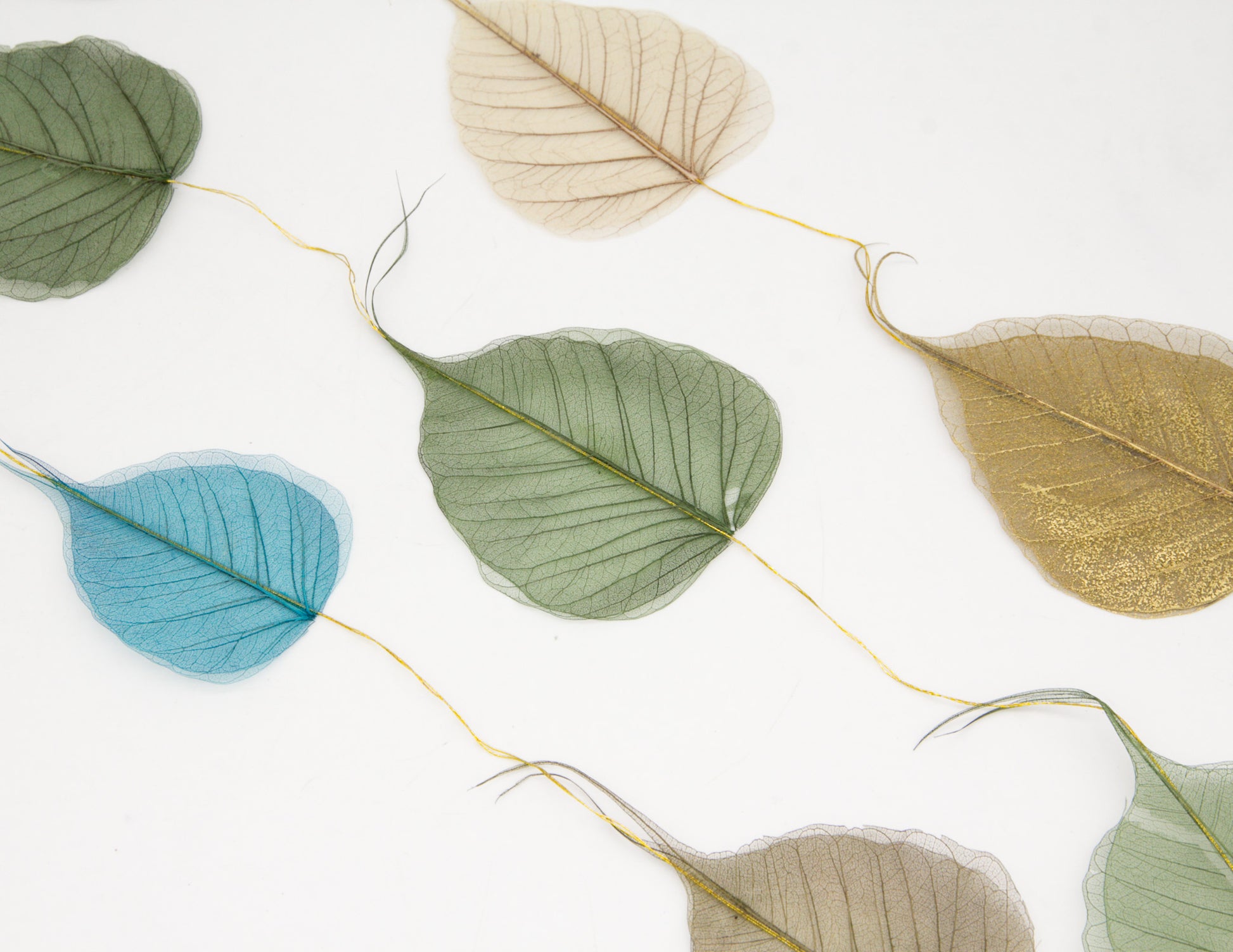 La ficelle mesure 190cm avec 10 feuilles squelettes.