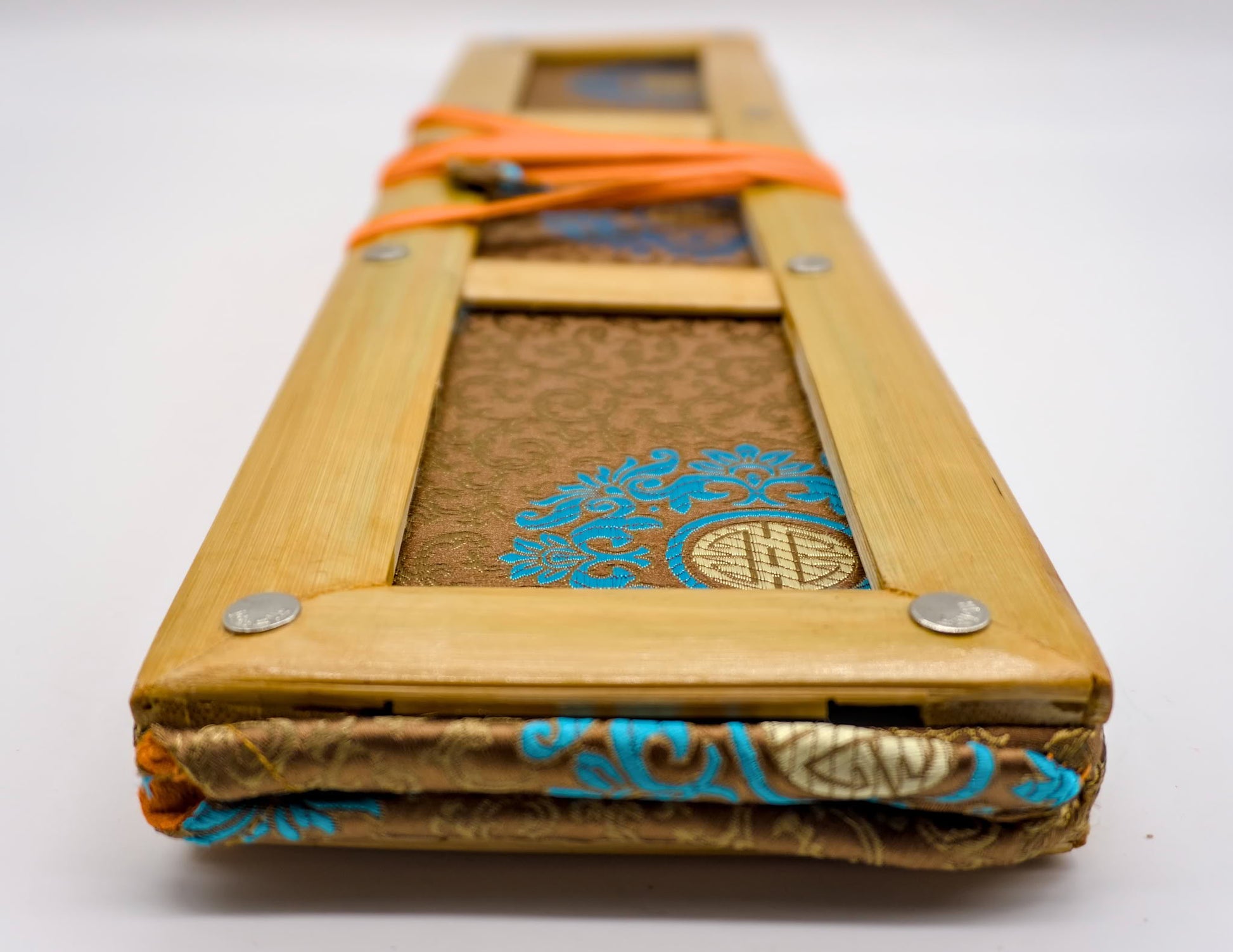 Manufacturé au Népal, nos porte-textes sont fabriqués à partir de bambou naturel non peint de haute qualité qui encadre un extérieur en brocart de soie coloré et un intérieur en tissu de coton avec une poche pratique pour contenir des images de divinités ou des notes. Ouvert, le support se tient debout pour soutenir votre texte tout en libérant vos mains et en vous permettant de lire facilement votre pratique. Fermé, le support stocke facilement votre matériel de pratique entre les sessions, le protégeant de la poussière, des accidents, de l'humidité et des pages perdues.